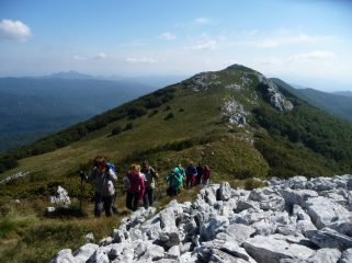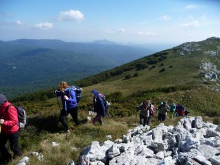 Bjelolasica je jedno od najpopularnijih hrvatskih planinarskih odredišta. Ugodan uspon do vrha Kula na 1534m usred zelenog Gorskog kotara, privukao je i svjesne planinare. Travnati greben Bjelolasice, prošaran bijelim stijenama, po kojoj je ova gora i dobila ime, poslužila je kao savršen teren za zahvalno izležavanje planinarske ekipe na jesenskom suncu. A palačinke s borovnicama u Begovom Razdolju maestralno su upotpunile ovaj dan, stvoren za punjenje baterija… hm, izgleda i želuca 🙂