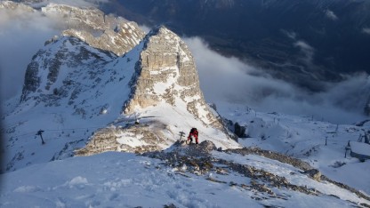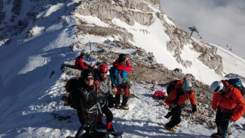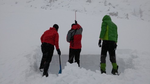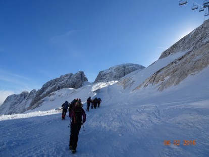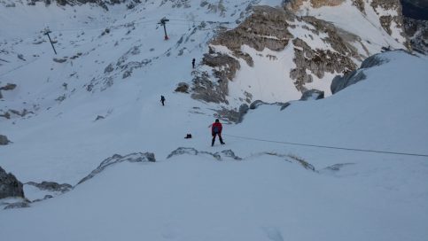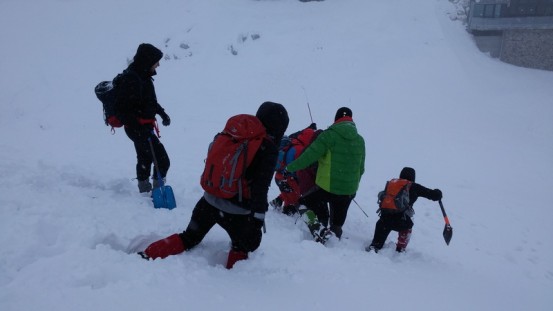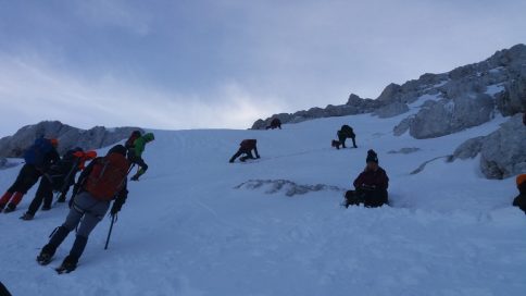 Male količine snijega i loša vremenska prognoza u Sloveniji odveli su visokogorce na na mjesto gdje snijega  ima, i gdje su se sve planirane vježbe ostvarile ;-)… uspon na nagibu do 50 st, uz pomoć fiksnog užeta i samostalno, izrada snježnih presjeka, lavinski testovi, potraga za unesrećenim u lavini… sve je to bio dio ove visokogorske lekcije.