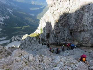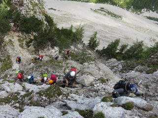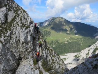 2. jesenska tura visokogorskog tečaja, uhvaćena na pravi sunčani vikend u Karavanskim Alpama. Uspon VG karavane započeo je s austrijske strane, iz doline Barental, nastavio „zelo zahtevnom“ stazom (ferata C) sa sjeverne strane do vrha Stol na 2236m, a izazovna tura prvog dana završila je spustom do doma Zelenica, ujedno i prenoćišta. Drugi dan slijedila je napeta zahtjevna ferata (ocjene D i E) iznad doma, a dodatnu lekciju na terenu tečajcima je priuštio susjed Slovenac koji je precijenivši svoje mogućnosti, u istoj zapeo… i nije bilo druge nego pozvati helikoptersku gorskoreševalnu službu…